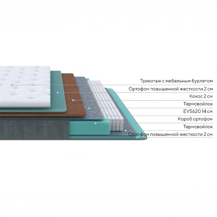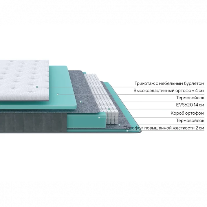 Анатомическая система поддержки позвоночника позволяет матрасу точечно реагировать на вес и контуры тела, правильно распределять нагрузку, разгружая мышцы во время сна. Плотная структура Ортофом в комфортных слоях выдерживает большие нагрузки и быстро восстанавливает форму.
