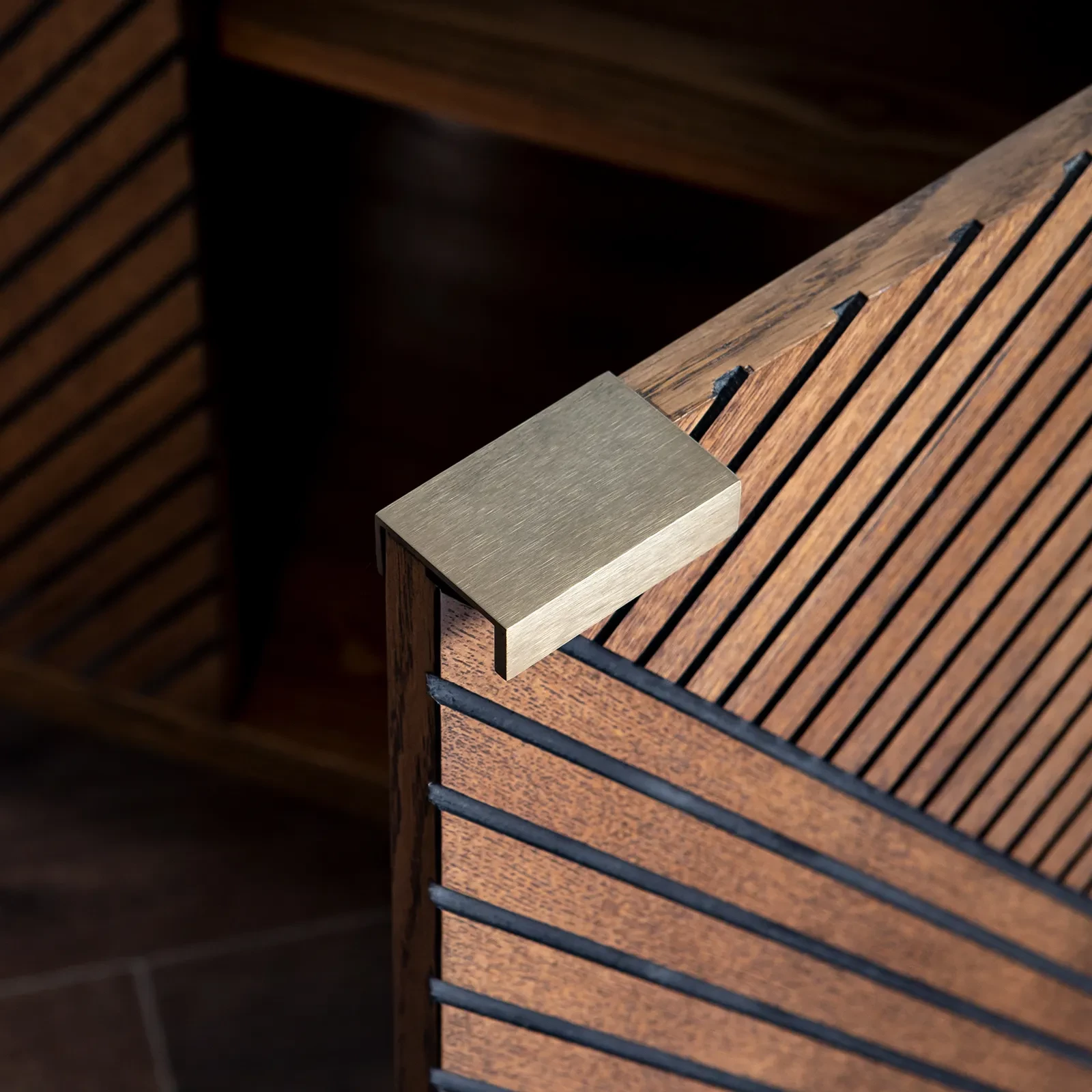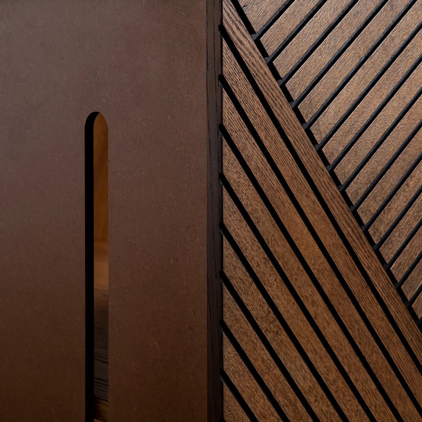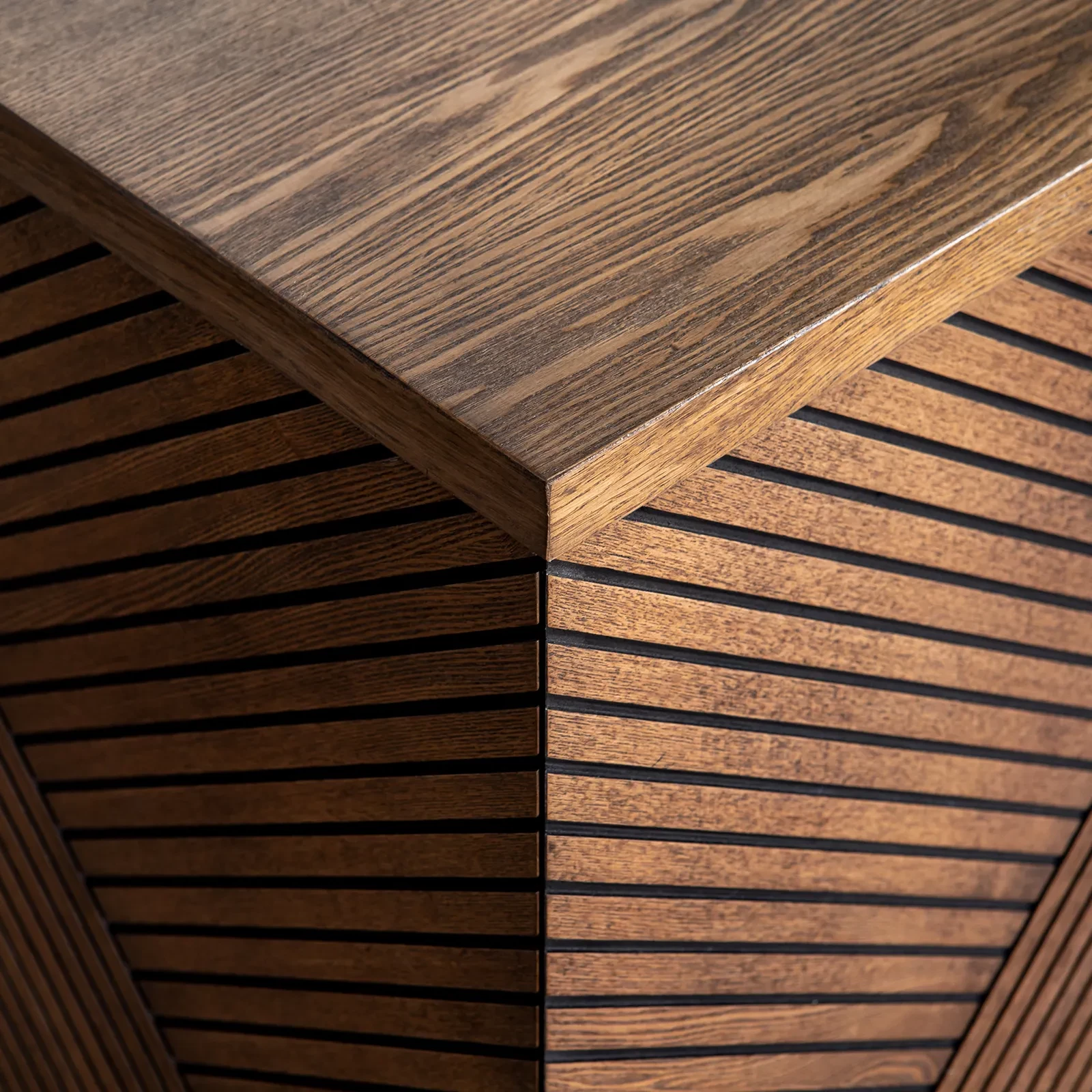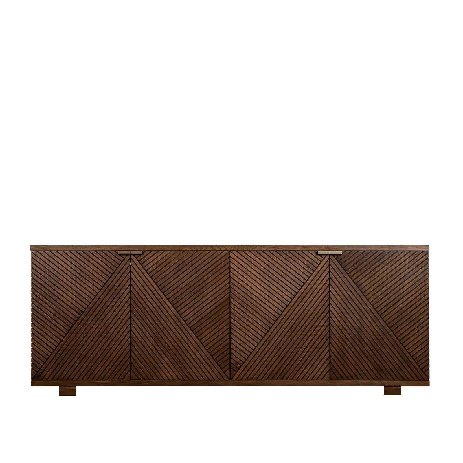 Тумба RAY - эффектная тумба российской фабрики FULL HOUSE с диагональной фрезеровкой фасадов. Выполнена из массива ясеня и шпонированного ясенем МДФ.
